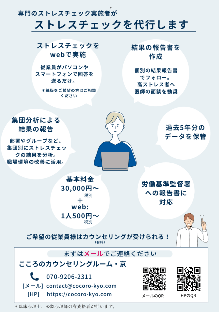 ストレスチェック実施者研修を受けた臨床心理士が実施。